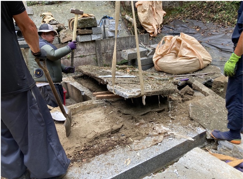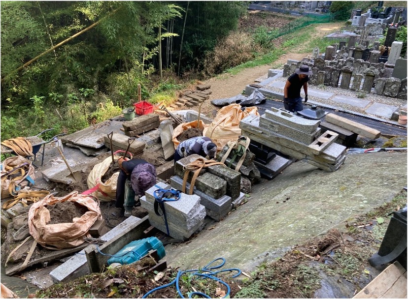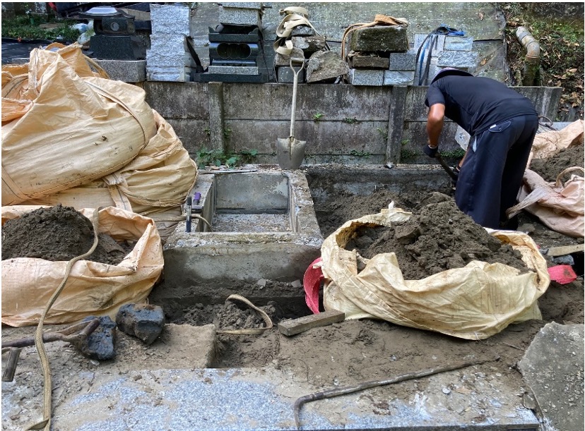 - 石塔、旧石、外柵、基礎、カロート:解体撤去工事